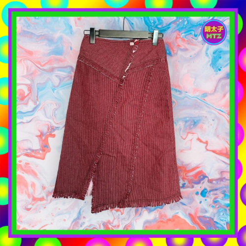 二手 LT 酒紅 類牛仔絨布 拼接 彈性 中高腰 25 長裙 F1124 【明太子 古著應召站】