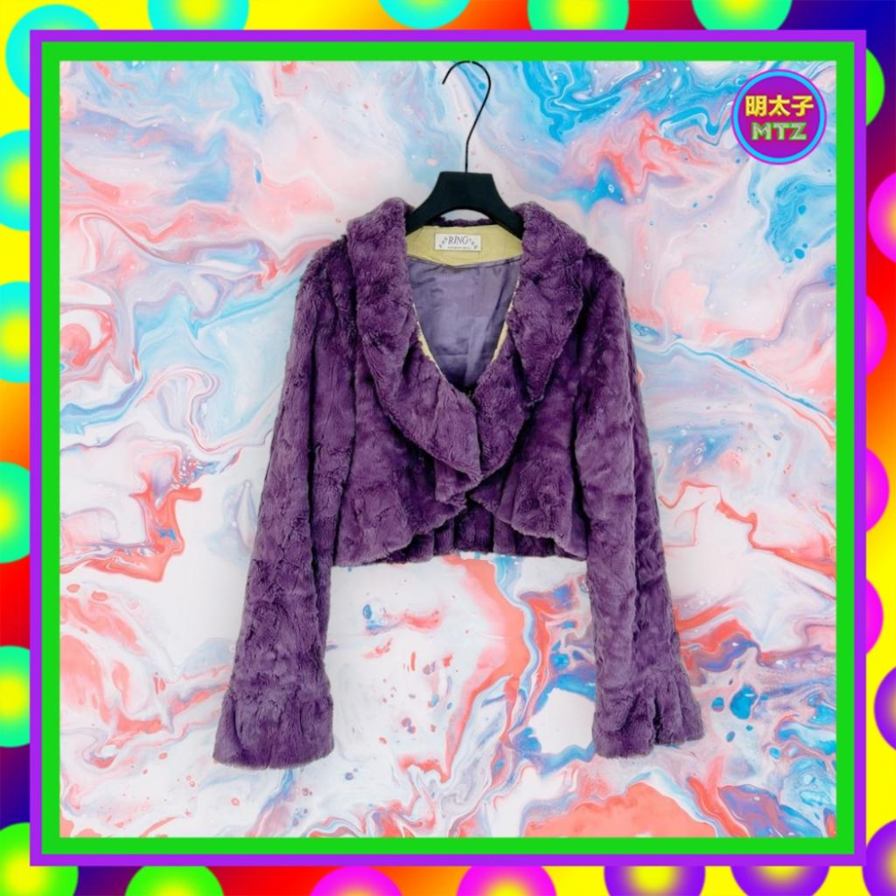 二手 RING 紫色 短毛絨 超級柔軟 微光澤 短版 仿皮草 外套 MG1 【明太子 古著應召站】