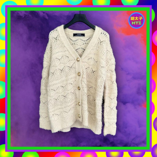 二手 RUNISBABY 米色 毛衣 鬚鬚 金蔥 微鏤空 彈性 排釦 長袖 外套 F1113 【明太子 古著應召站】