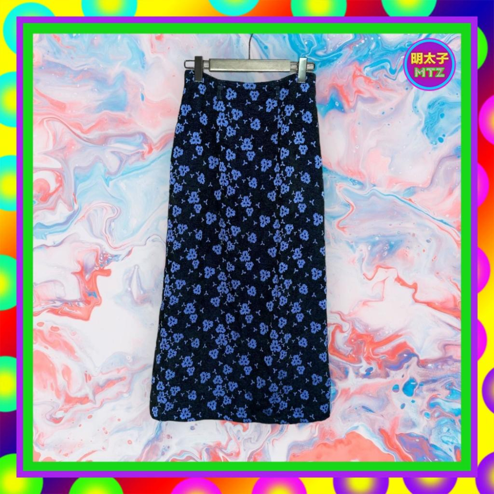 二手 BEIERDI 藍色 緹花 絨布 高腰 27 長裙 F1113 【明太子 古著應召站】
