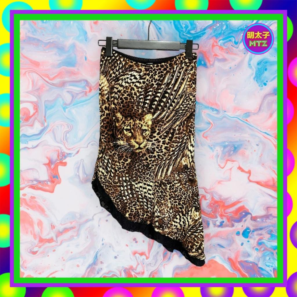 二手 BEST&T 咖黑 豹紋 蕾絲邊 彈性 鬆緊腰 斜裙 低腰 26 長裙 F1110 【明太子 古著應召站】