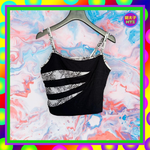 二手 ERICA 灰黑配色 輕薄軟 彈性 拼接 蛇紋 短版 背心 F1107【明太子 古著應召站】