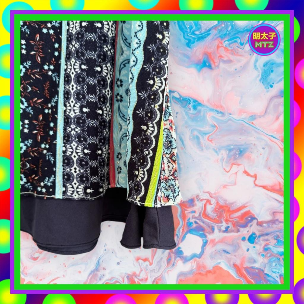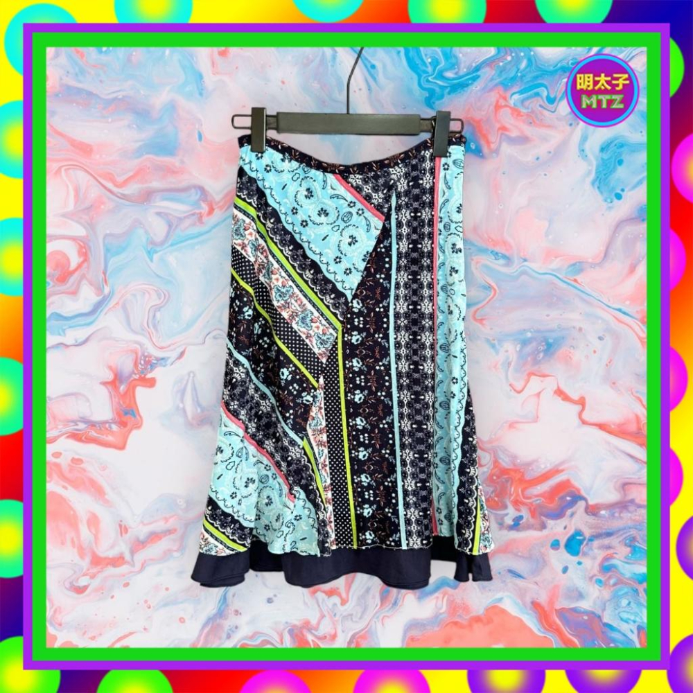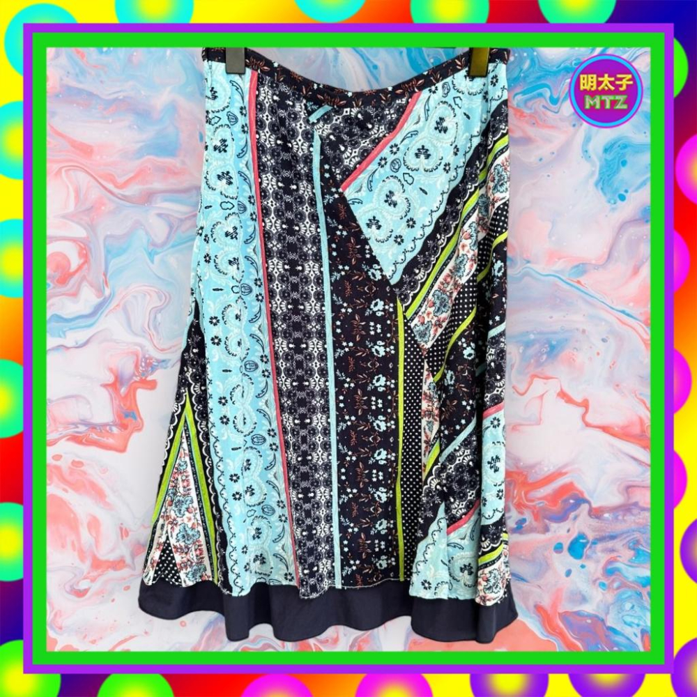 二手 LOVE FIELD 藍色 彩色印花 輕薄軟 彈性 拼接 低腰 27 長裙 F1107 【明太子 古著應召站】