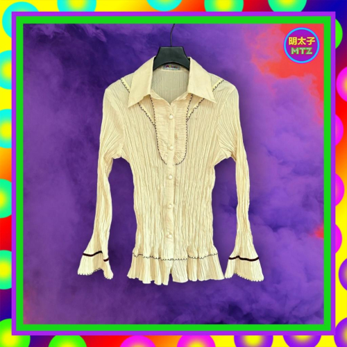 二手 MAGIC 米色 壓褶 彈性 長袖 襯衫 F1106 【明太子 古著應召站】