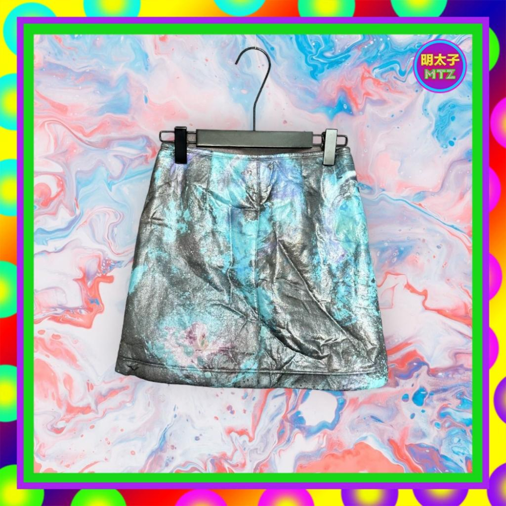 二手 BOM SHIC 藍灰配色 斑駁印花 珠光 薄鋪棉 高腰 26 短裙 F1101 【明太子 古著應召站】