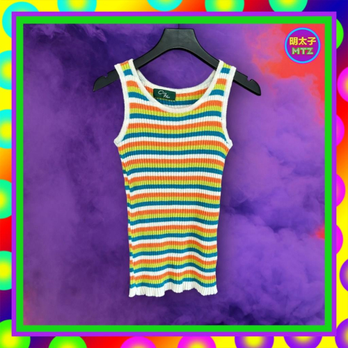 二手 CITY HOT 白彩色 條紋 針織 彈性 背心 F1027 【明太子 古著應召站】