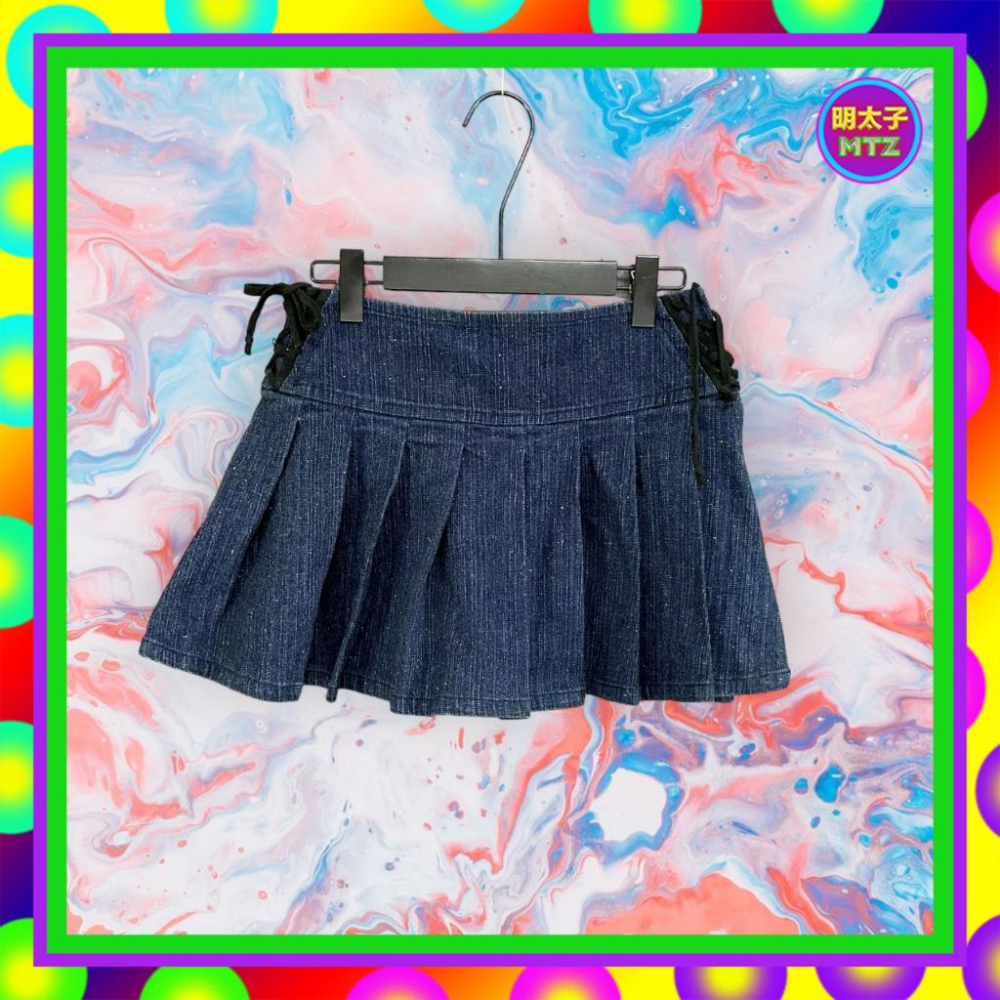 二手 AMOEBA 藍色 牛仔 綁繩 彈性 打褶 低腰 30 短裙 F913 【明太子 古著應召站】