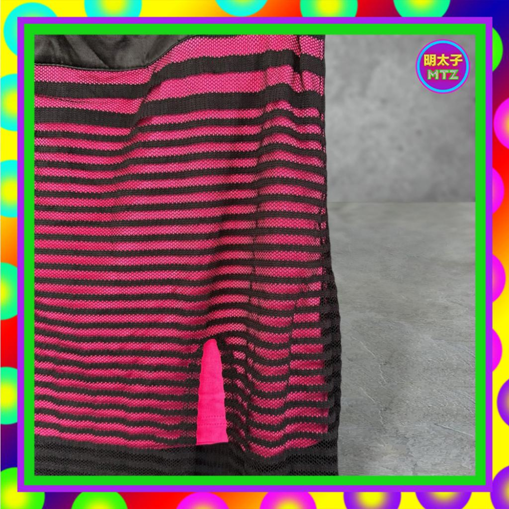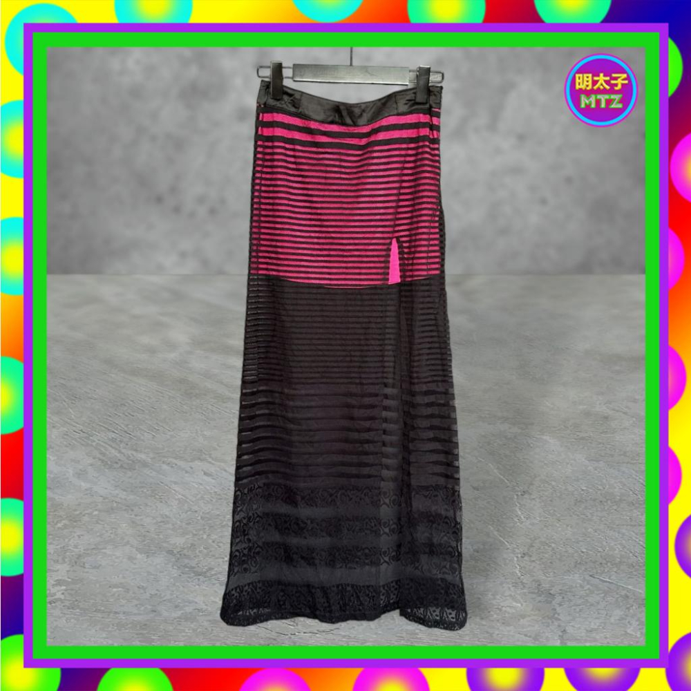 二手 ACTRESS 黑桃紅色 雙層 外網狀條紋 彈性 短內裡 高衩 高腰 28 長裙 F901 【明太子 古著應召站】
