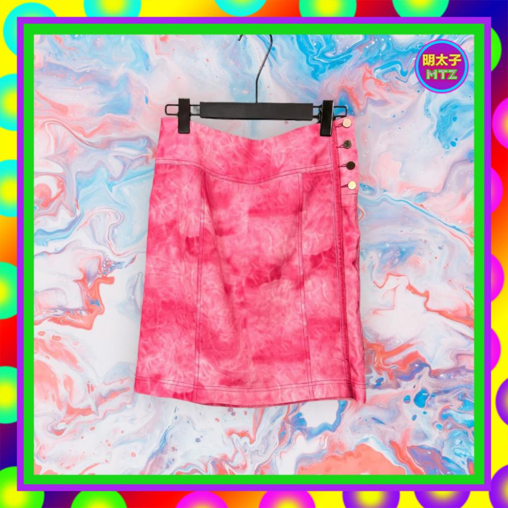 二手 FOREVER 桃紅白配色 暈染 略彈性 拼接 側上排釦 合身 低腰 29 長裙 F828 【明太子 古著應召站】