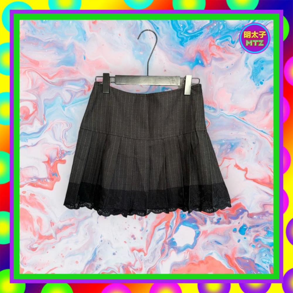 二手 CANTWO 黑灰色 西裝布 線條 壓褶 拼接 蕾絲 低腰 28 短裙 F823 【明太子 古著應召站】