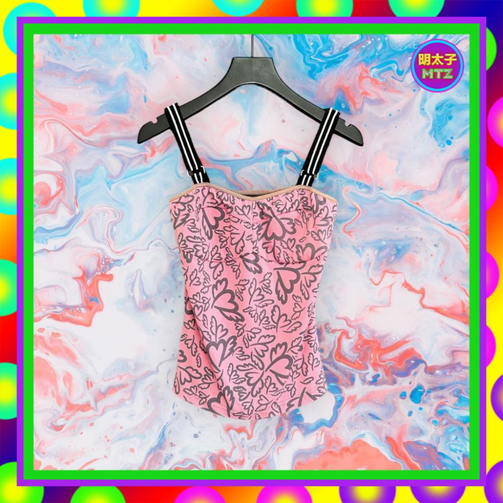 二手 BAITER 粉紅灰配色 印花 彈性 拼接 背心 F817【明太子 古著應召站】