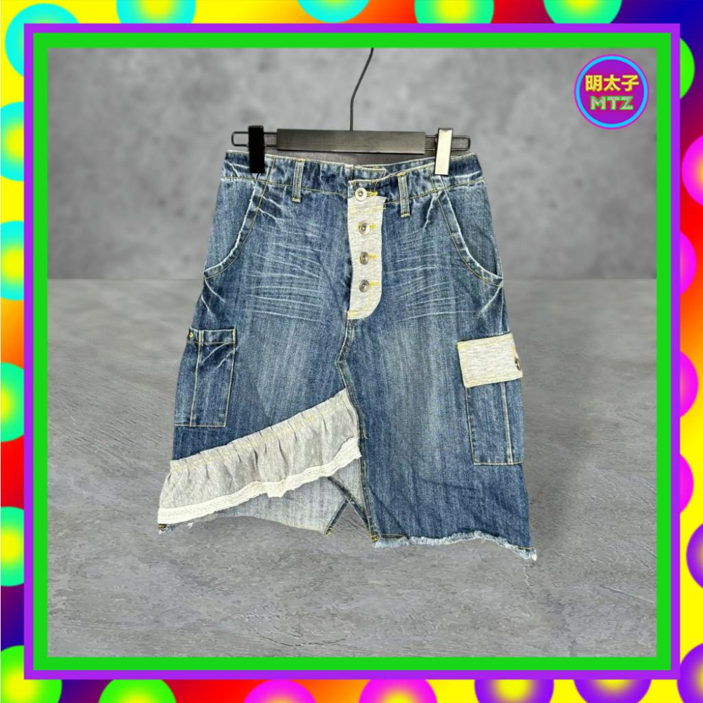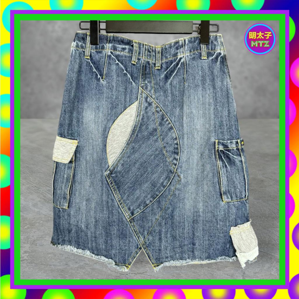 二手 BETTY'S 藍灰配色 牛仔 拼接 口袋 低腰 30 長裙 F724 【明太子 古著應召站】