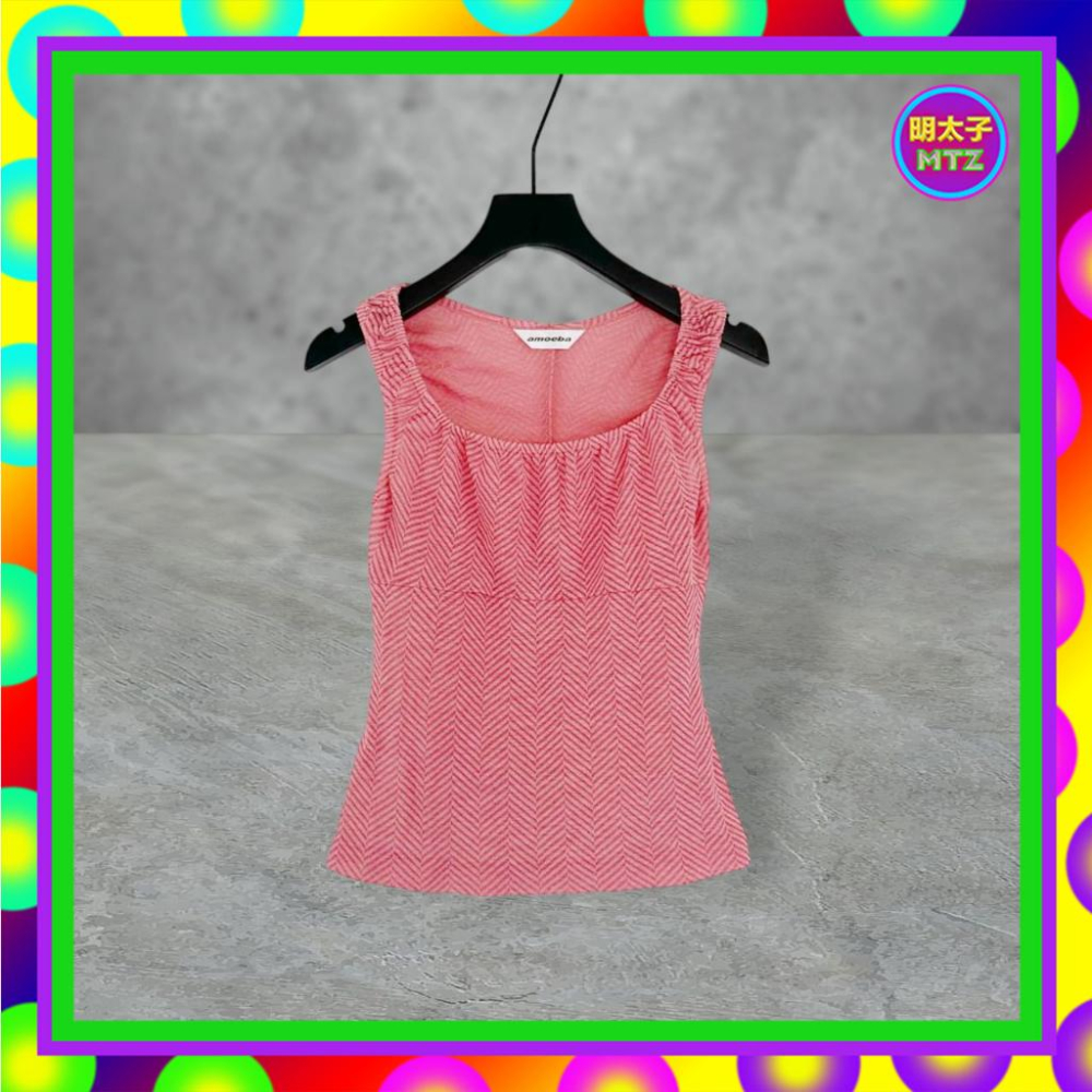 二手 AMOEBA 暗粉紅 輕薄軟 織紋 微透 背心 F720 【明太子 古著應召站】