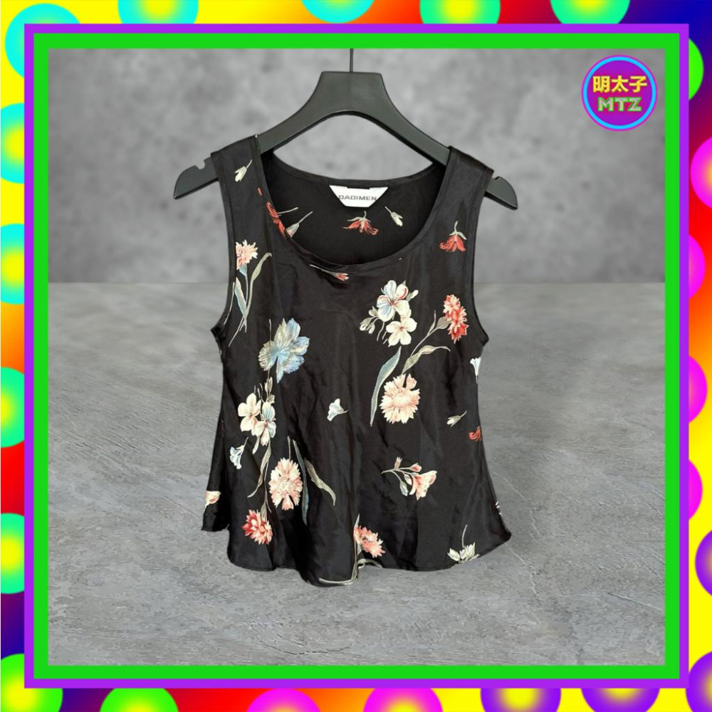 二手 DADIMEN 黑色 緞面 彩色印花 輕薄飄逸 傘狀 背心 F717 【明太子 古著應召站】