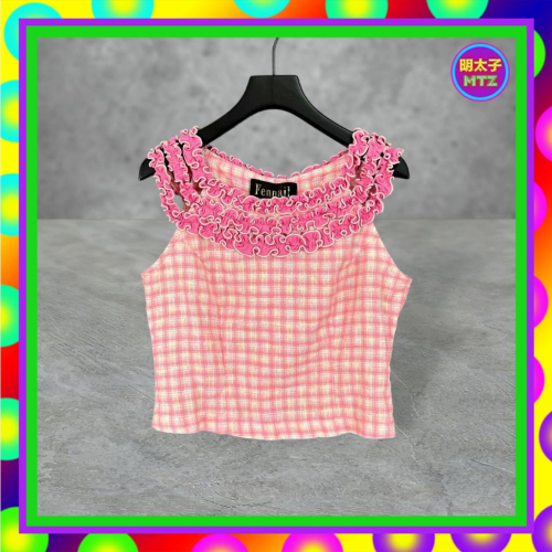 二手 FENNAIL 粉紅色 格織紋 輕薄 透光 拼接 中短版 側拉鍊 背心 F714【明太子 古著應召站】
