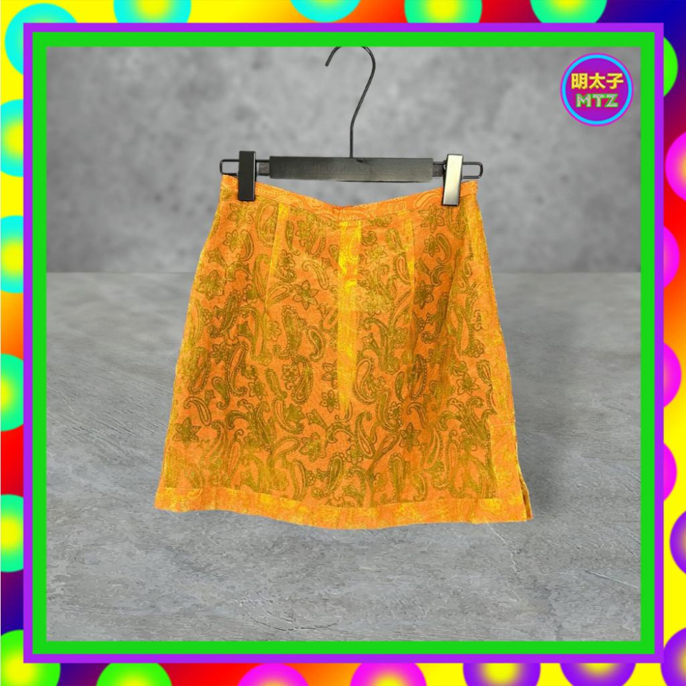 二手 CHIC 暗橘色綠配 薄紗 閃耀 微挺 織紋 高腰 25 短裙 F712 【明太子 古著應召站】