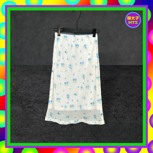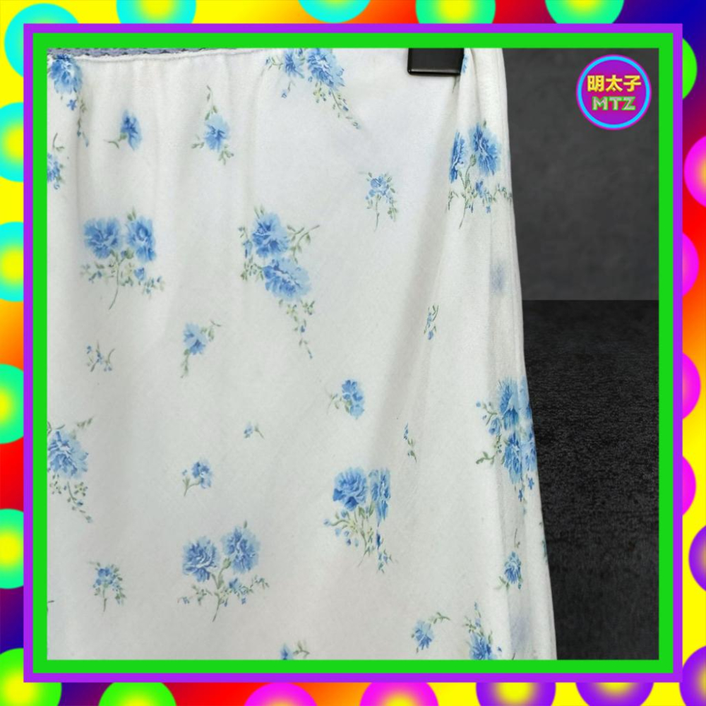 二手 BIGI 白藍配色 輕薄 印花 彈性 鬆緊 高腰 23~26 長裙 F621 【明太子 古著應召站】