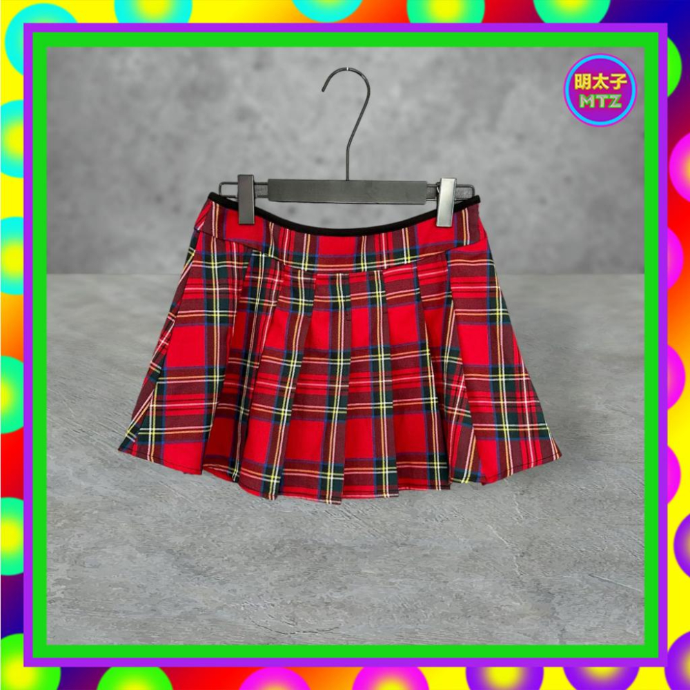 二手 ACTRESS 紅色 格紋 輕薄 壓褶 迷你 低腰 29 短裙 F621 【明太子 古著應召站】