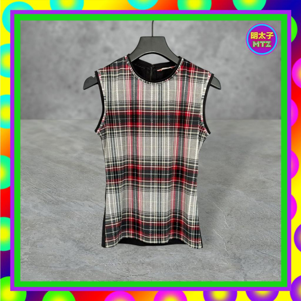 二手 COCORICO 黑灰紅配色 格紋 拼接 運動網布 輕薄軟 彈性 背心 F612 【明太子 古著應召站】