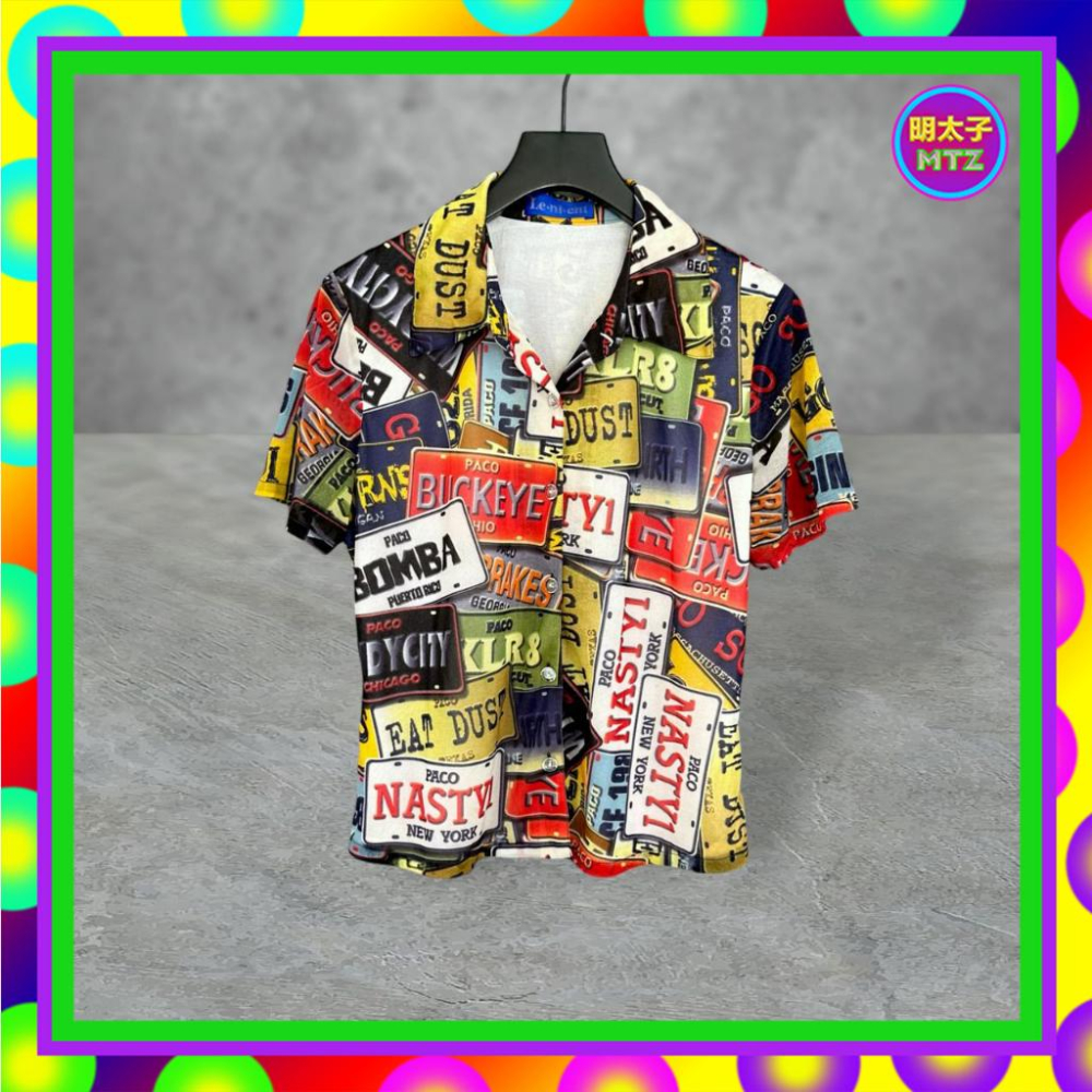 二手 彩色 印花 微閃耀 微微透 輕薄軟 略彈性 短袖 襯衫 F612 【明太子 古著應召站】