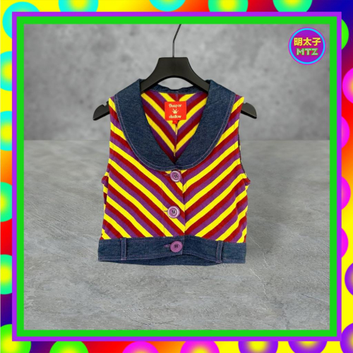 二手 DEEPOR SHALLOW 彩色 針織 拼接 牛仔 口袋 排釦 短版 背心 PF424 【明太子 古著應召站】