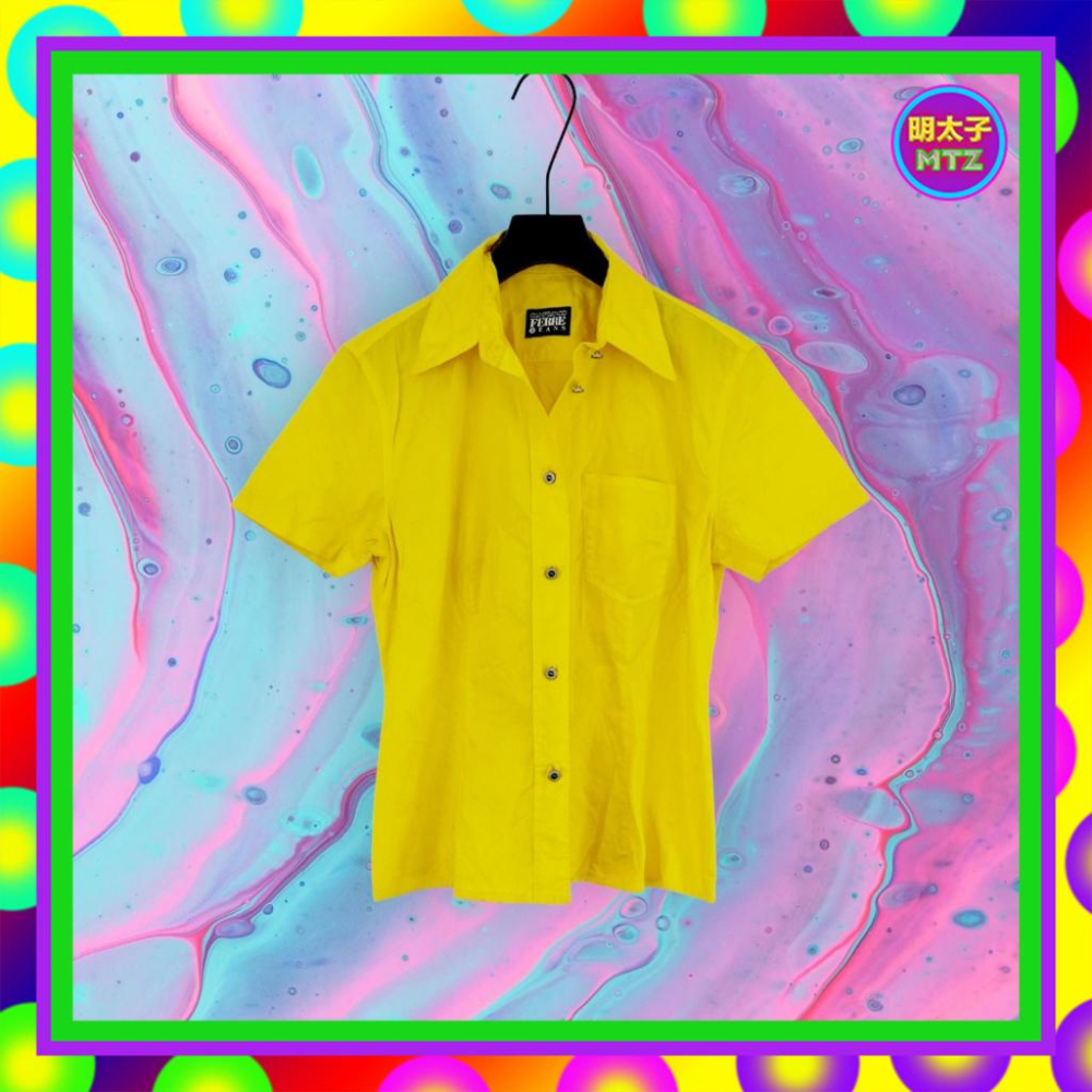 二手 GIANFRANCO FERRE 黃色 輕薄 微挺 短袖 襯衫 PF419 【明太子 古著應召站】