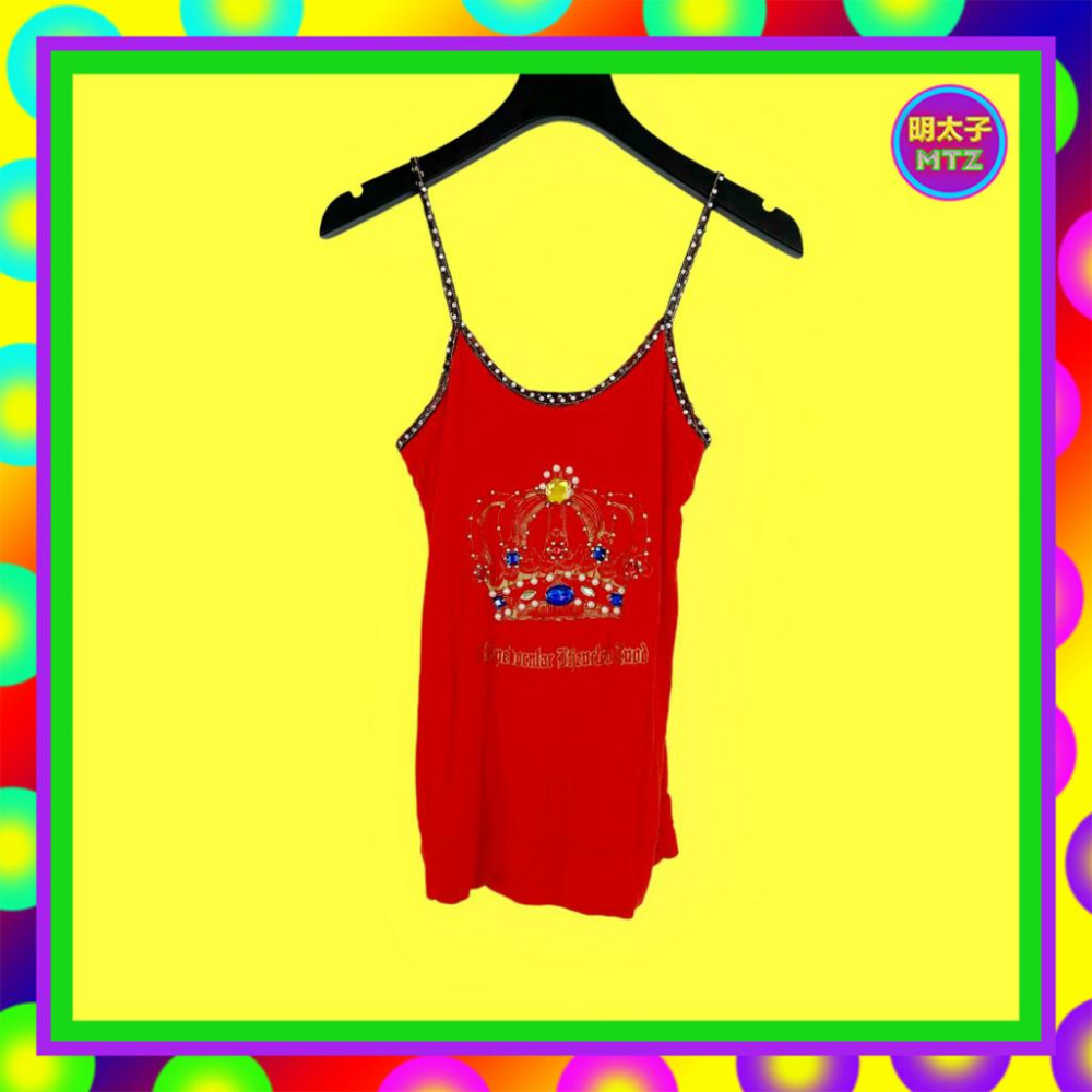 二手 E世代 紅色 輕薄軟 彈性 拼接 印花 鑽飾 珠飾 亮片 背心 F317B 【明太子 古著應召站】