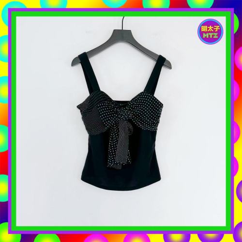 二手 BERNIS 黑色 輕薄飄逸 拼接 薄紗 抓奶皺 彈性 中短版 背心 PF301 【明太子 古著應召站】