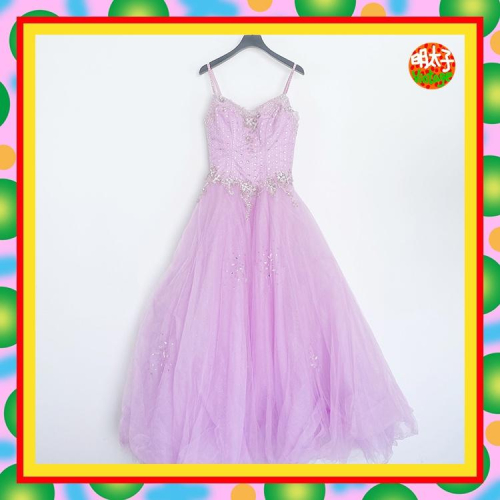 二手 粉紫色 網紗 鑽珠飾 蕾絲 大傘裙 禮服 洋裝 ME19 【明太子 古著應召站】