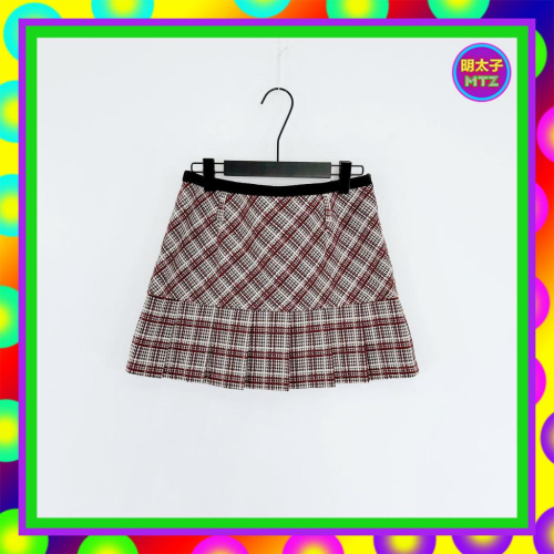 二手 COSSE 黑白紅配色 格紋 略硬挺 拼接 壓褶 迷你 低腰 30 短裙 F209 【明太子 古著應召站】