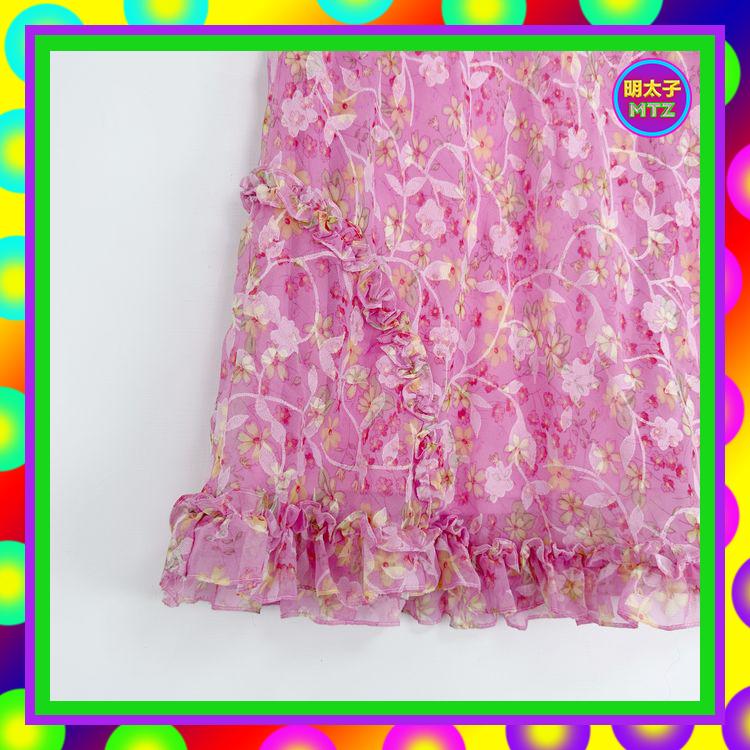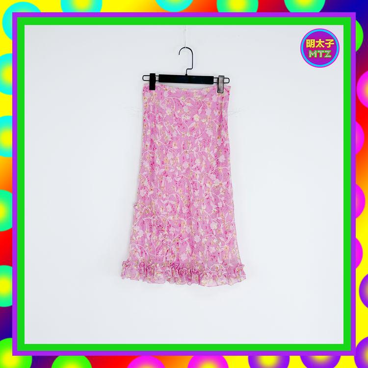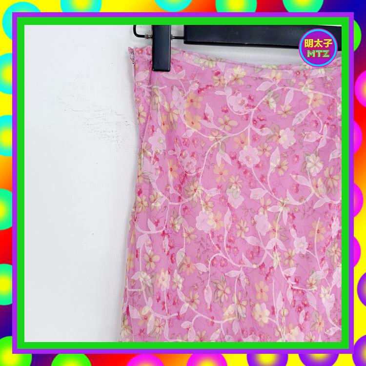 二手 HOHO 粉紅 印花緹花 薄紗雙層 彈性 高腰 26 長裙 F112 【明太子 古著應召站】