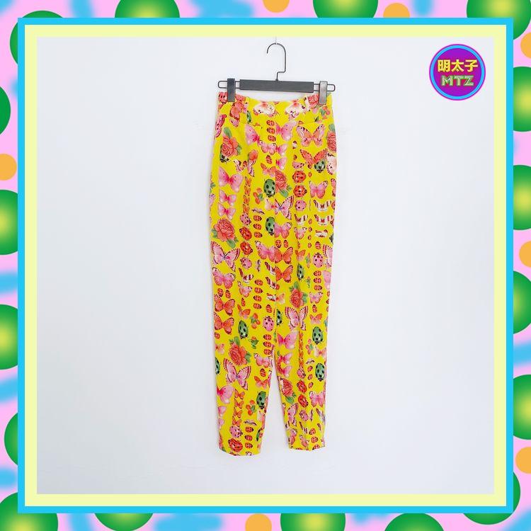 二手 froii froii 黃色 昆蟲印花 輕薄飄逸 口袋 無內裡 高腰 23 長褲 E605 【明太子 古著應召站】