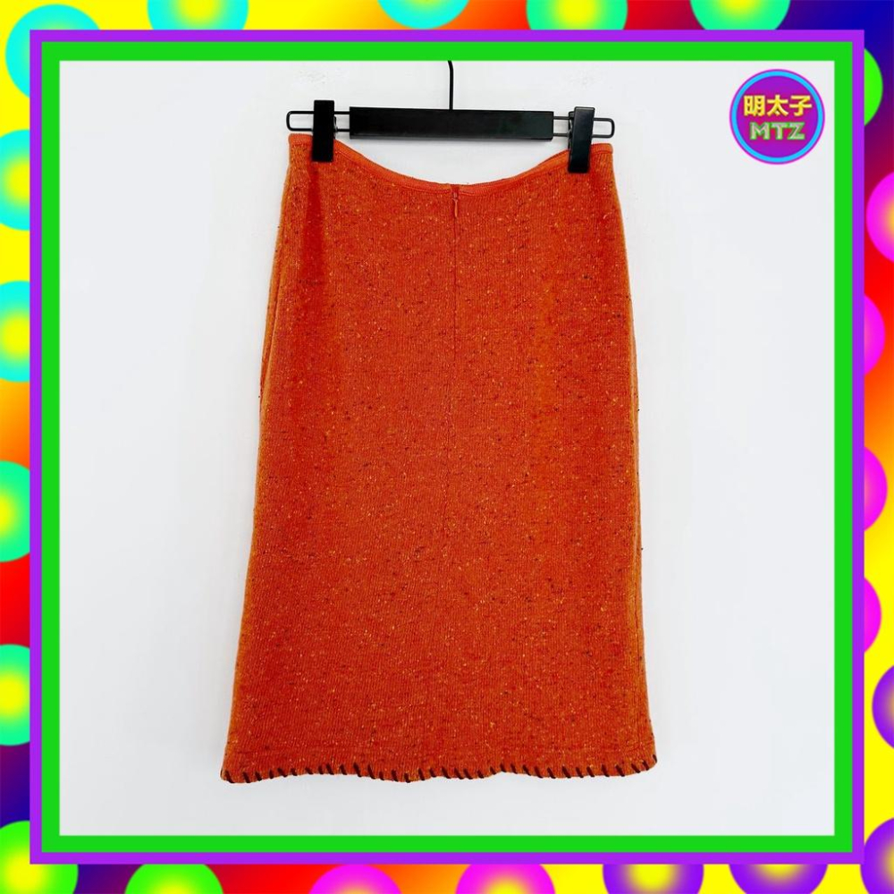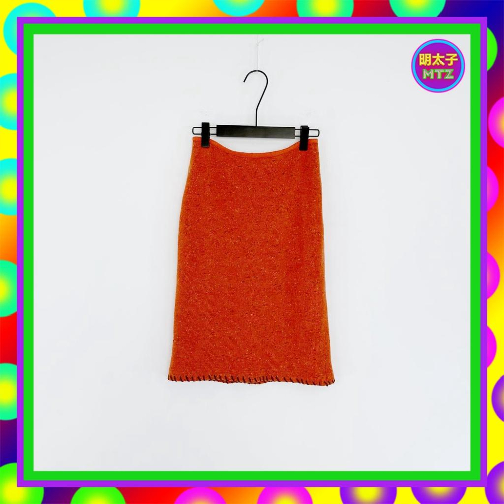 二手 LAVINS 深橘色 毛線 彩色針織 彈性 窄版 低腰 26 長裙 E1215 【明太子 古著應召站】