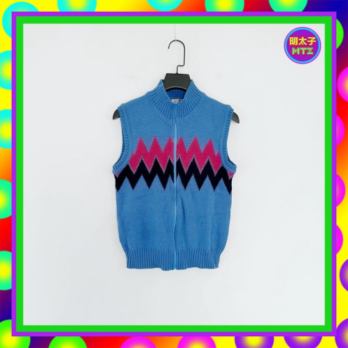 二手 CITYHOT 藍彩色 針織 輕毛料 拉鍊 彈性 背心 E1201 【明太子 古著應召站】