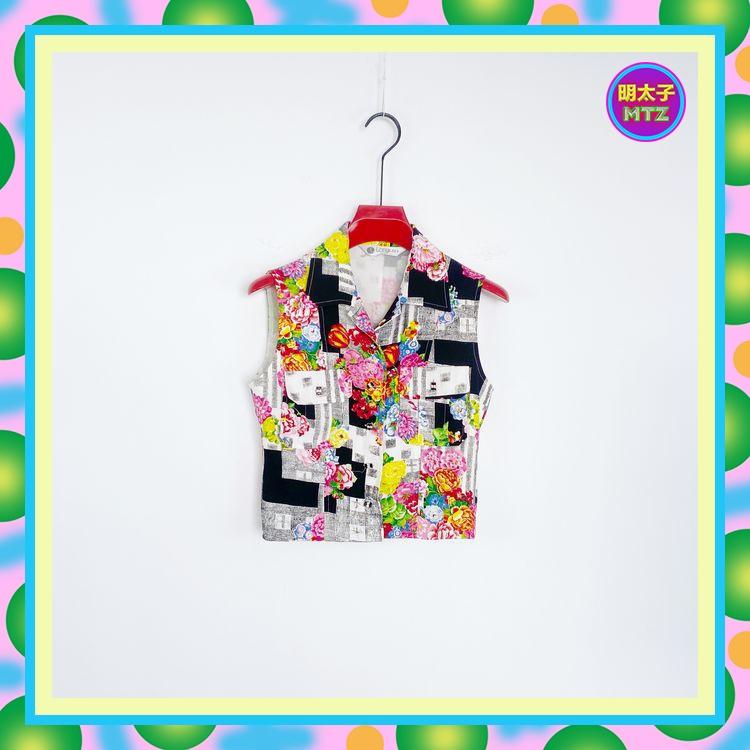 二手 彩色 印花 排釦 口袋 背心 E1128B 【明太子 古著應召站】