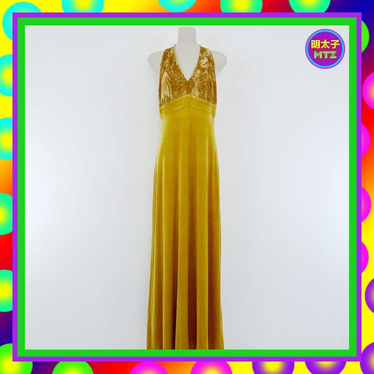 二手 棕黃色 絨布 略彈性 拼接 罩杯 削肩 禮服 洋裝 E1116 【明太子 古著應召站】