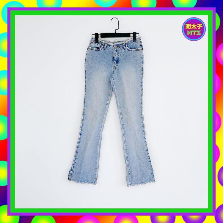 二手 藍色 牛仔 鬚鬚 喇叭 中低腰 27 長褲 E1014 【明太子 古著應召站】