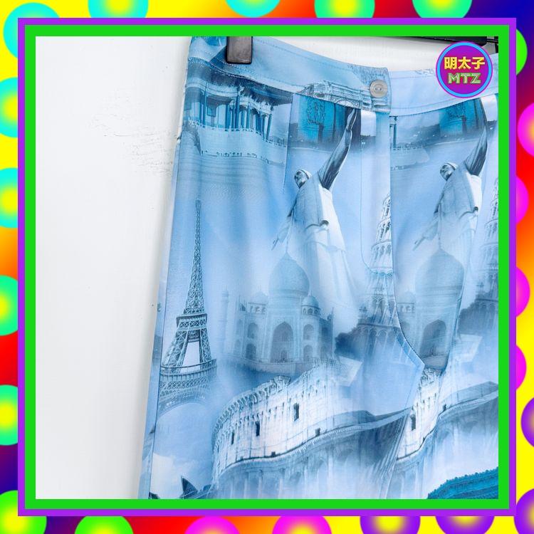 二手 COCOTTE 藍色 風景印花 微厚 彈性 高腰 26 長裙 E1002 【明太子 古著應召站】