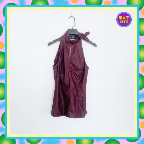 二手 COCORICO 咖啡色 露乳 削肩 背蕾絲 綁帶 彈性 背心 E721 【明太子 古著應召站】