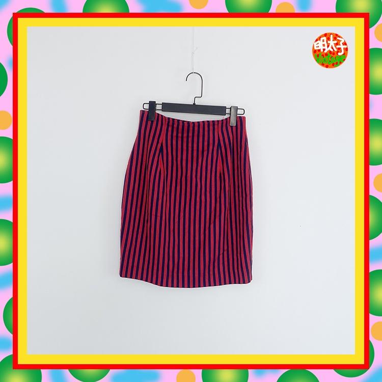 二手 BODY FASHION 紅藍 緹花 條紋 高腰 28 短裙 D1215 【明太子 古著應召站】