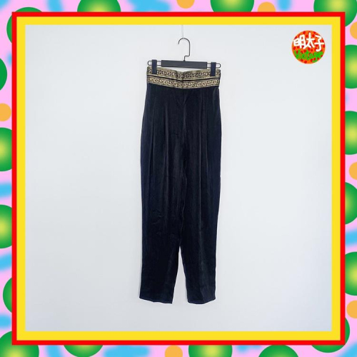 二手 黑色 金電繡 打褶 無內裡 高腰 長褲 D1208 【明太子 古著應召站】