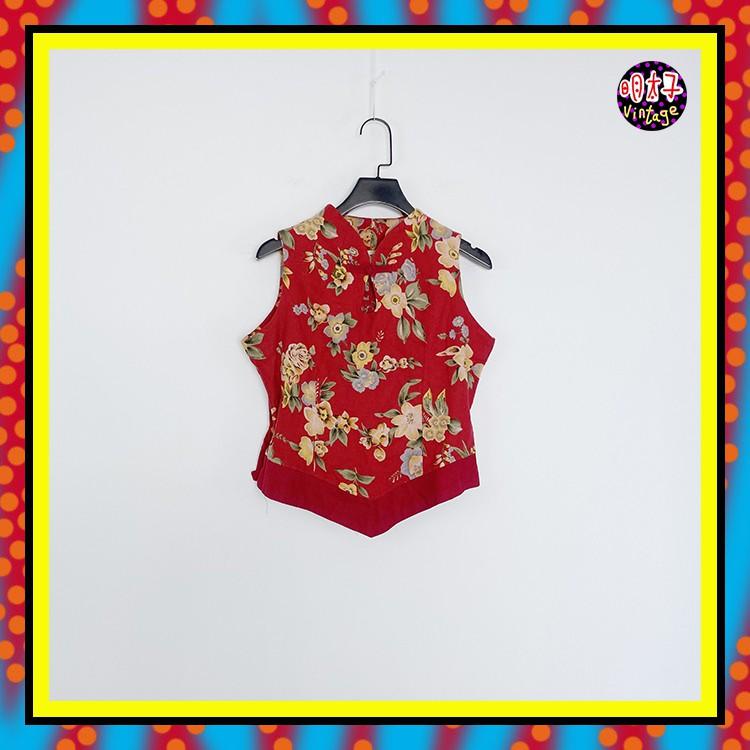 二手 紅色 印花 中國風 彈性 背心 D920 【明太子 古著應召站】