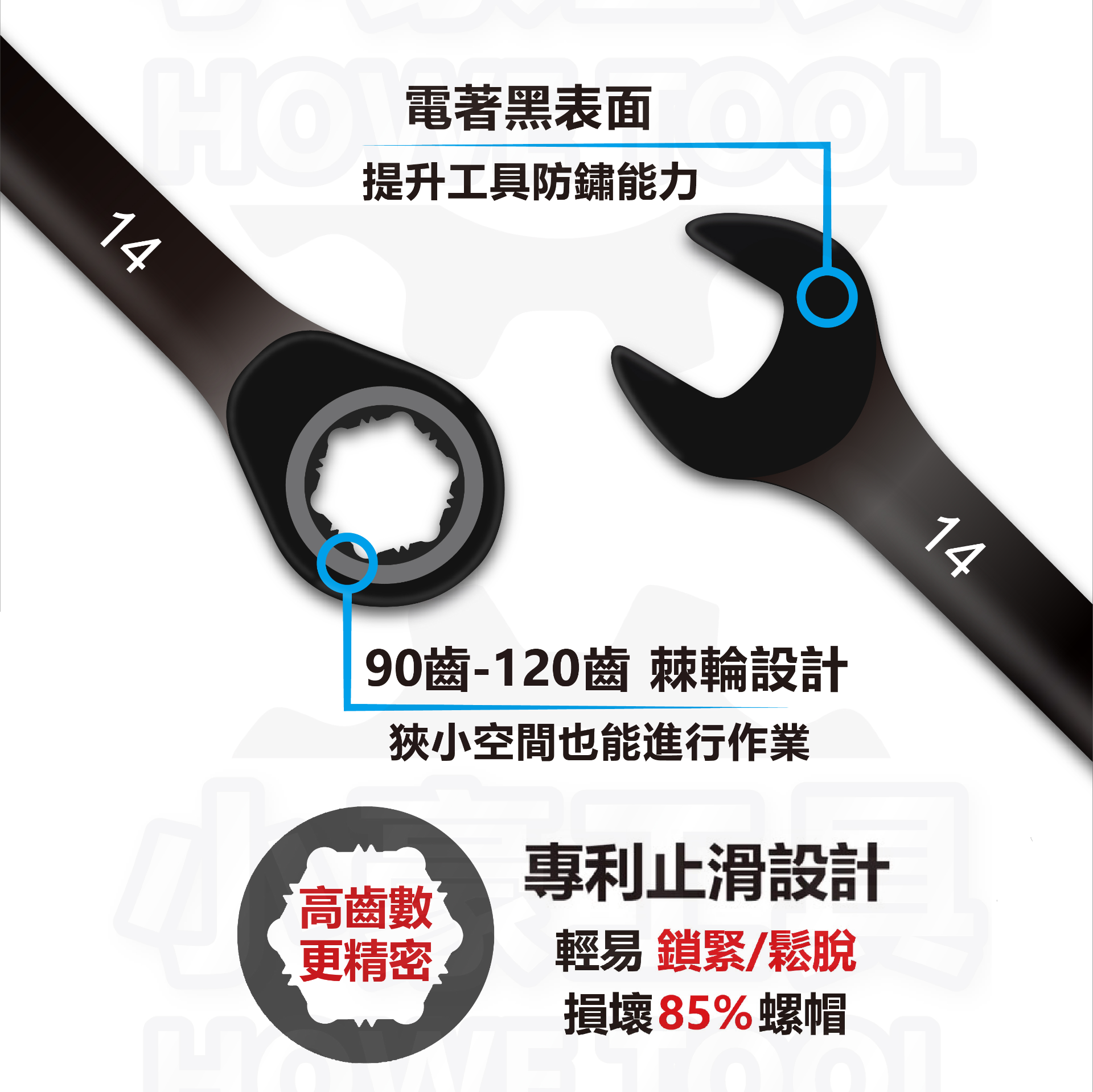 120齒 專利 棘輪止滑扳手組 7支/組 電著黑