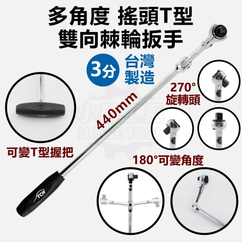 3分(3/8") 多角度搖頭T型雙向棘輪扳手