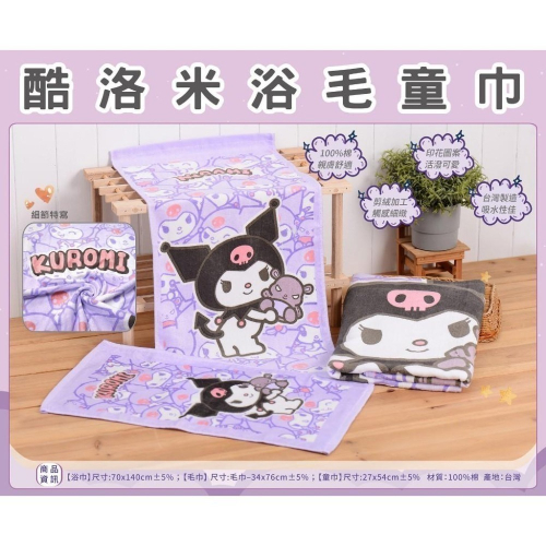酷洛米浴毛童巾 三麗鷗 尺寸:27x54cm 材質:100%棉