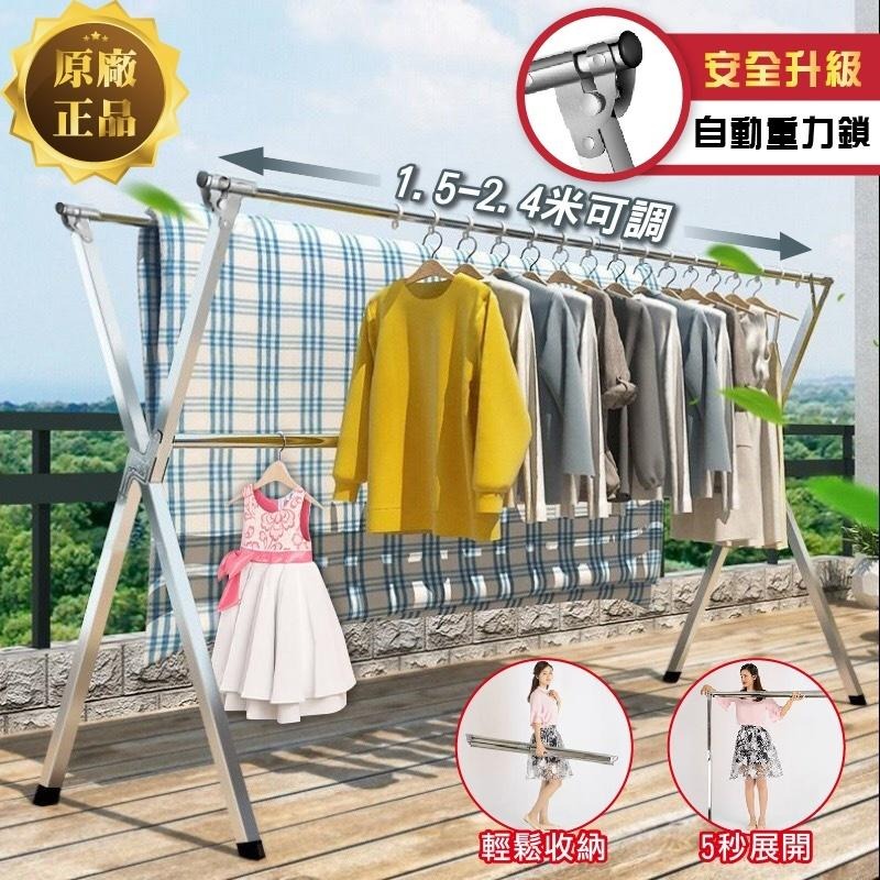 專利重力鎖 免安装X型不鏽鋼曬衣架 曬衣架 晾衣架 防風衣架 防滑衣架 不鏽鋼衣架 伸縮曬衣架 折疊收納 衣架