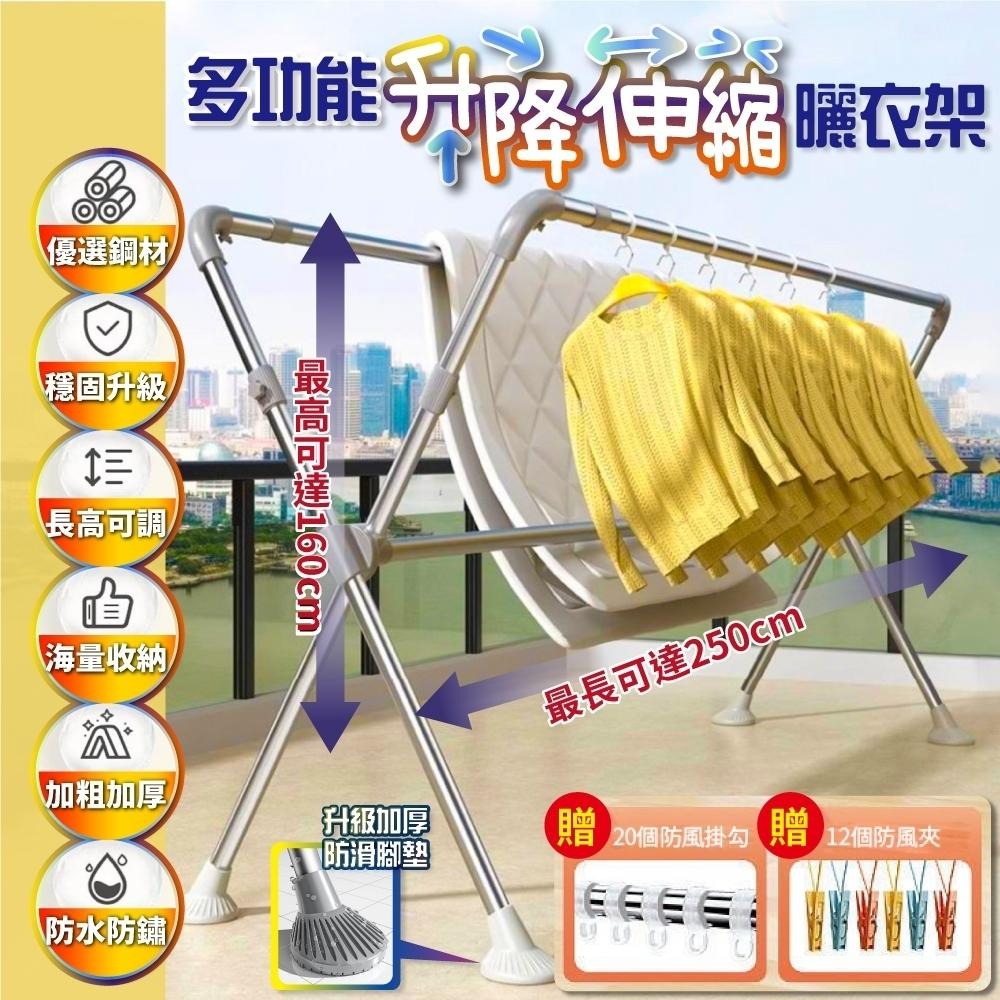 X型不鏽鋼曬衣架 升級可升降伸縮衣架 晾衣架 不銹鋼掛衣架 三桿曬衣架 曬被架
