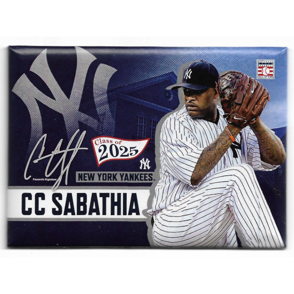 慶祝 CC Sabathia 以 2025 年名人堂成員身分正式入選棒球名人堂!這款名人堂紀念磁鐵收錄了 Sabathia 的經典照片、洋基隊標誌、複製簽名與棒球名人堂標誌,是您親臨殿堂時最值得帶回的紀念品之一。
