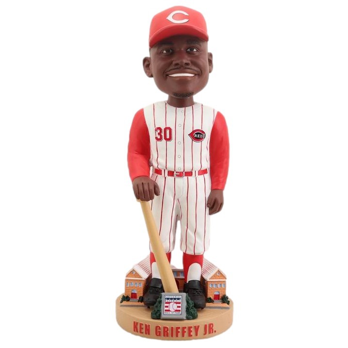 這款 Ken Griffey Jr. 的辛辛那提紅人隊名人堂公仔,是為了紀念他在棒球場上的非凡生涯而設計的,並象徵他榮登棒球最高榮耀——名人堂。