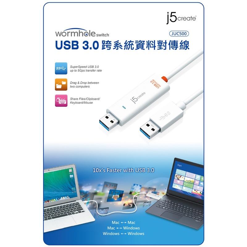 [買酷小舖]全新正品 j5 Create 蟲洞穿梭 JUC500 Win-Mac跨系統資料對傳線 USB3.0 1.5M